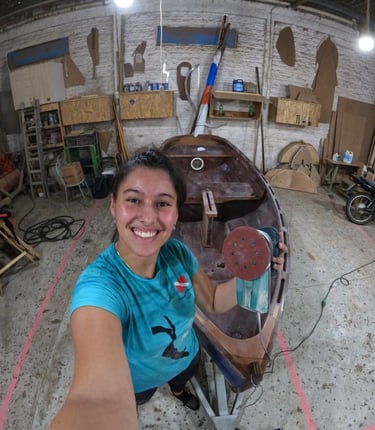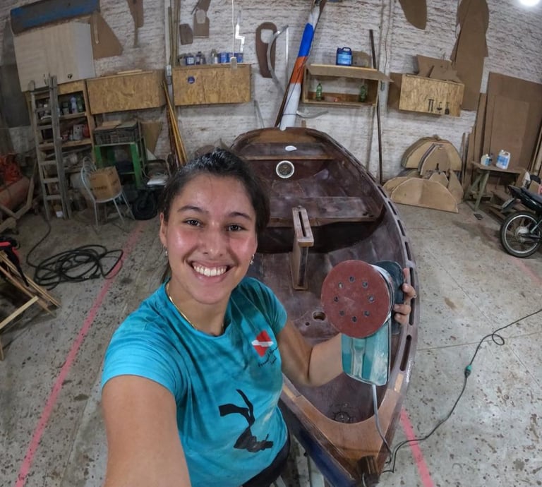 Sou Maria Beatriz, velejadora e apaixonada pela arte de construir barcos. Aos 15 anos construí meu primeiro barco a vela e, desde então, vivo entre o mar, a madeira e o vento. Hoje, documentando a construção de um novo veleiro, compartilho a vela como comunidade, aprendizado e caminho — sempre levando mais gente a bordo dessa jornada.